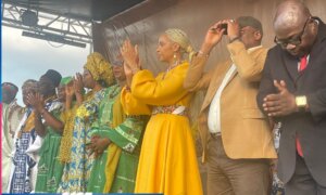 CDU candidate, Hermine Tomaino Patricia epse Ndam Njoya flanked by allied political parties