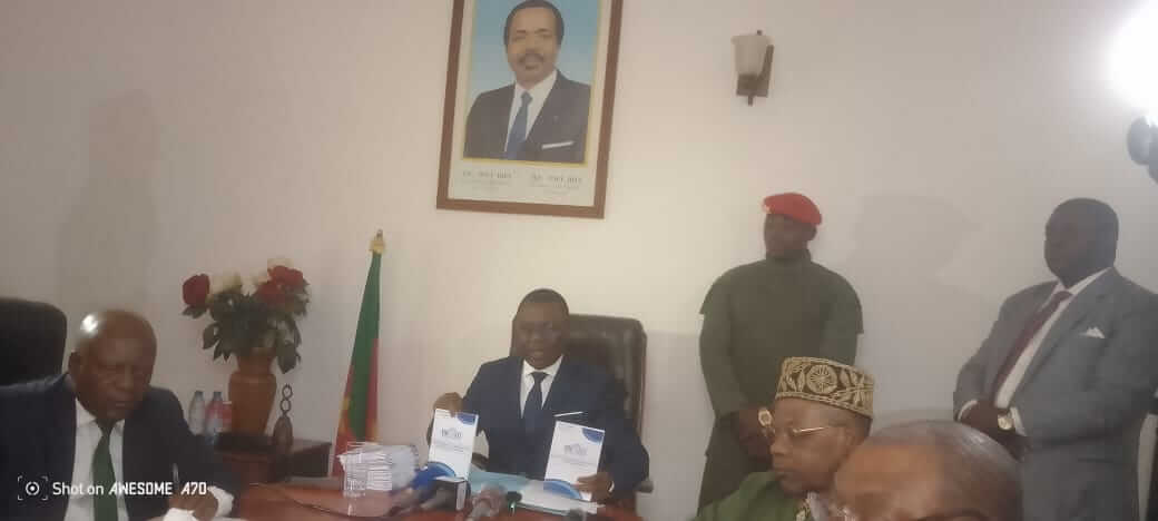 NCC President, Joseph Chebongnkeng brandishing bilingual guide for journalists