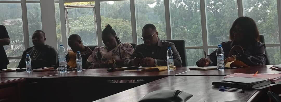 The Regional Delegate of State Property, Surveys and Land Tenure, other members of the commission during the working session at the conference hall of the Regional Delegation in Buea
