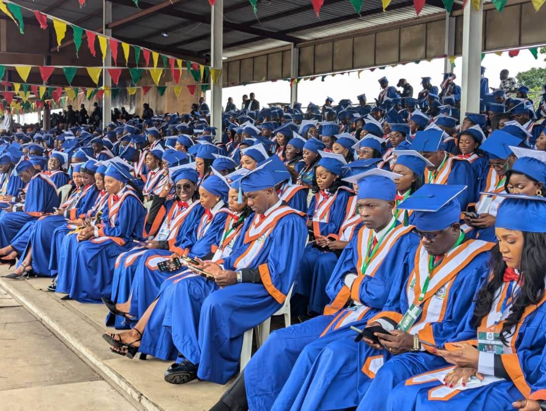 Cross-section of graduates at grand stand in Buea