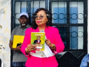 Secondary Education boss, Minister Nalova Lyonga donating Paul Biya exercise books to students in Fako Division